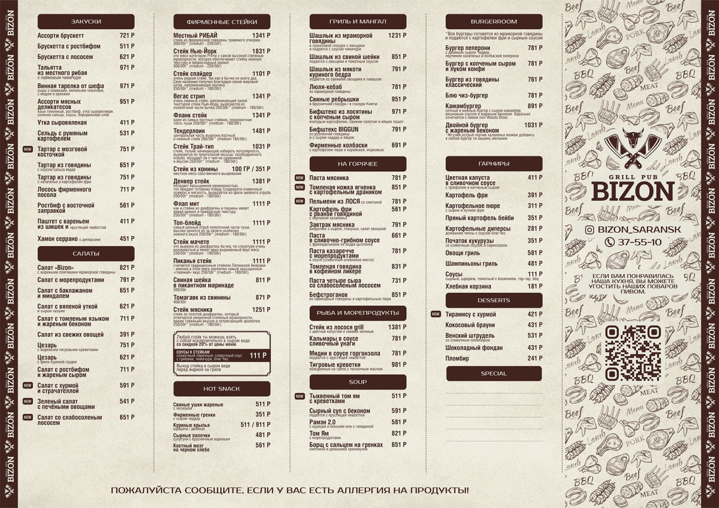 ⚫ Гриль-паб Бизон в Саранске, где вкус встречается с атмосферой!